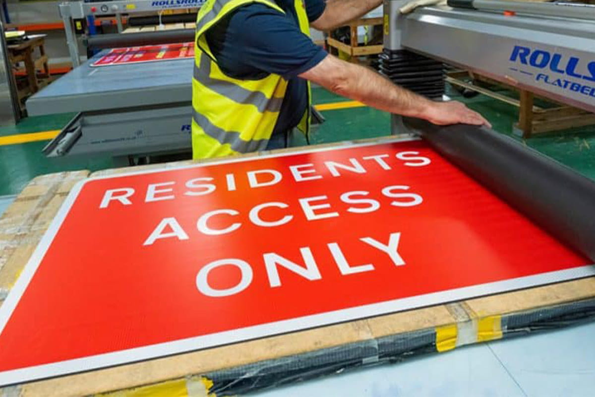 We manufacture high-quality temporary and permanent traffic signs in our own workshop. From standard signs to fully bespoke designs, our advanced equipment and skilled team deliver durable, compliant signage quickly and cost-effectively, giving you complete control over quality and lead times.